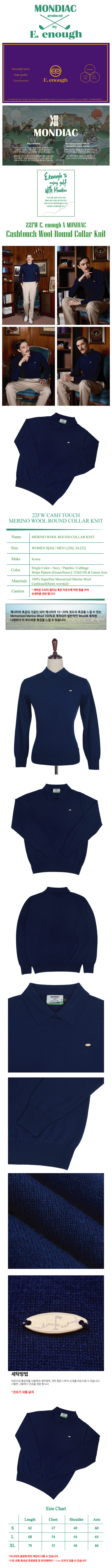 E. enough x Mondiac Round Collar - Navy (Merino Wool 100%)