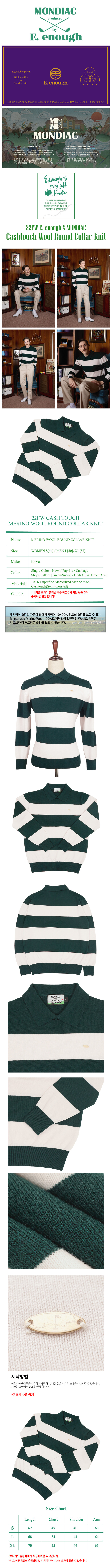 E. enough x Mondiac Round Collar - Green Stripes (Merino Wool 100%)
