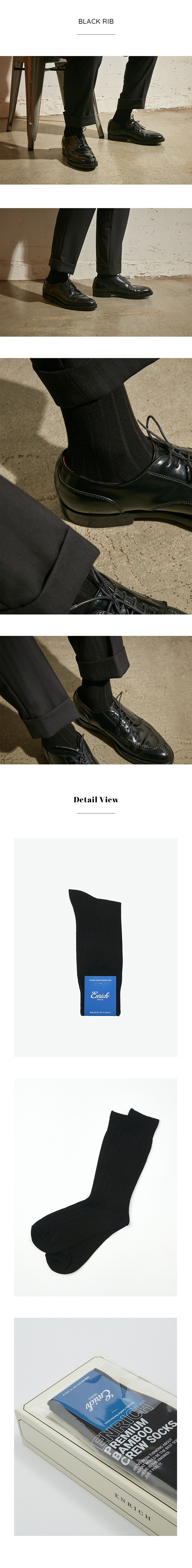 [Enrich Seoul] Bamboo Crew Socks - Black Rib