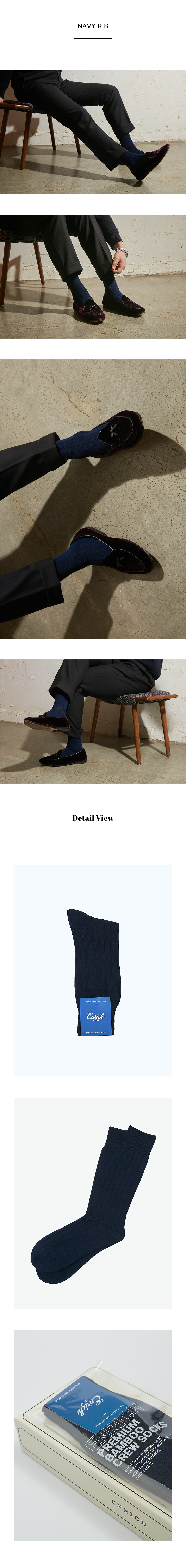 [Enrich Seoul] Bamboo Crew Socks - Navy Rib